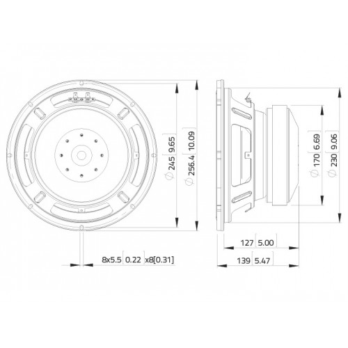 400 W AES, 8 Ohm, 91,5 dB, 50 - 500 Hz