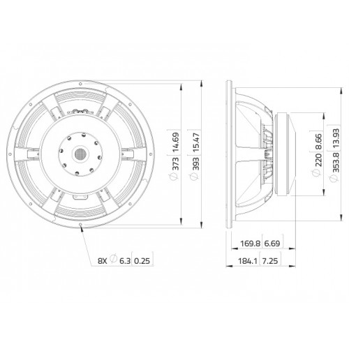 1000 W AES, 8 Ohm, 97 dB, 40 - 1000 Hz