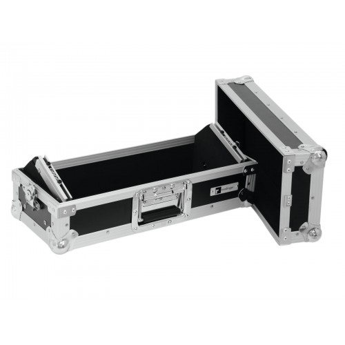 Flightcase für 483-mm-Geräte (19")Mit dem ROADINGER Mixer-Case Profi sind Ihre Geräte, zum Beispiel Controller oder Mischpulte, immer gut aufbewahrt. Die schräg gestellten Profilschienen, die um ca. 13° geneigt sind, sorgen für eine optimale Bedienbarkeit des Gerätes von oben. Die nötige Stabilität erhält das Transport-Case durch den Aluminiumprofilrahmen mit abgerundeten Ecken und den vier stahlverstärkten Gummifüßen. Verschließen können Sie das Case mit zwei hochwertigen Butterfly-Schlössern.Der Innenraum des Mixer-Cases hat einen schaumstoffgepolsterten Innenraum, so dass Ihre Geräte immer optimal geschützt sind. Der Deckel ist abnehmbar. Die maximale Last beträgt 25 kg.Rack-Case