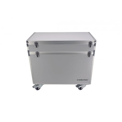 Der Transport- und Ladewagen, den du hier siehst, besteht aus einer Aufbewahrungseinheit für 10 Sprechstellen und einer Steuerzentrale. Aber das ist noch nicht alles, denn er verfügt auch über eine Ladeeinheit für bis zu 10 Sprechstellen-Akkus.