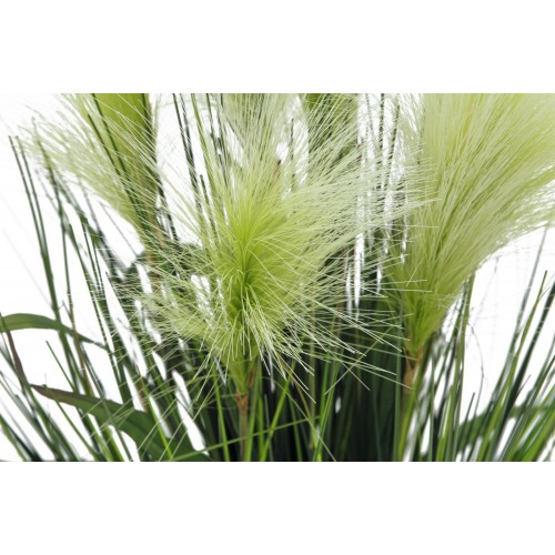 Ziergras im TopfDas künstliche Federgras ist eine kleine, aber feine Zierpflanze für Wohnung oder Büro. Das Federgras ist 60 cm hoch mit 4 täuschend echten, weißen Blüten versehen. Es steht in einem einfachen Zementtopf. Die Pflanze fällt von selbst in Form.Unser künstliches Ziergras bildet eine schlichte, dezente Dekoration für jeden Raum. Zudem sieht die Pflanze immer frisch und grün aus. Sie haben keine Mühe damit - die Pflanze braucht keine Pflege und Sie müssen sie nicht gießen.Deko-Gras mit fedrigen Blütenständen