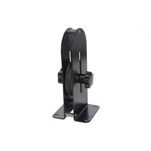Schwarze Umlenkrolle mit Spannvorrichtung zur Festmontage des Kordelsystems.
