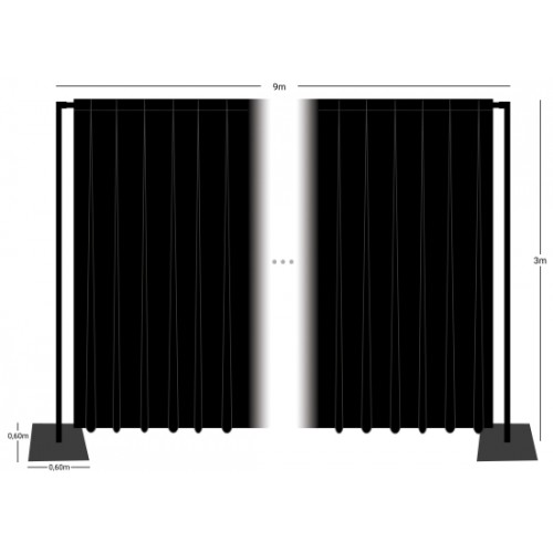 Das Pipes & Drapes SET "Deko Vorhang 3x9m" eignet sich besonders als Kulisse, Trennwand oder Hintergrundverkleidung. Der Aufbau ist in weniger als drei Minuten erledigt. Es erlaubt ein sehr schnelles Abtrennen von Bereichen oder Verkleiden von Wänden.