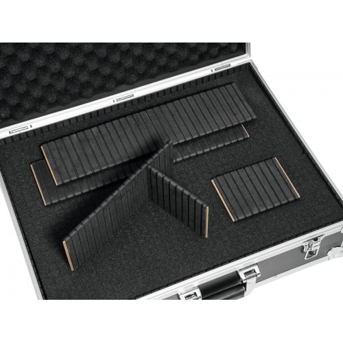 Universal einsetzbares Flightcase mit WürfelschaumDas ROADINGER Universal-Koffer-Case Pick ist mit einer hochfesten Schaumstoffpolsterung und Würfelschaum ausgestattet. Dies ermöglicht es Ihnen, Ihr Case ganz individuell an Ihr Equipment anzupassen. Die Einteilung des Innenteils ist also ohne Zuschnitt oder weitere Bearbeitung möglich. Die hochwertige Verarbeitung mit mehrschichtig verleimtem Holz , Aluminiumprofilrahmen mit abgerundeten Ecken und dreischenkligen, mittelgroßen Stahlkugelecken verleihen dem Case Stabilität.Zudem verfügt das Flightcase über zwei abschließbare Schnappschlösser und einen robusten Tragegriff.Koffer-Case