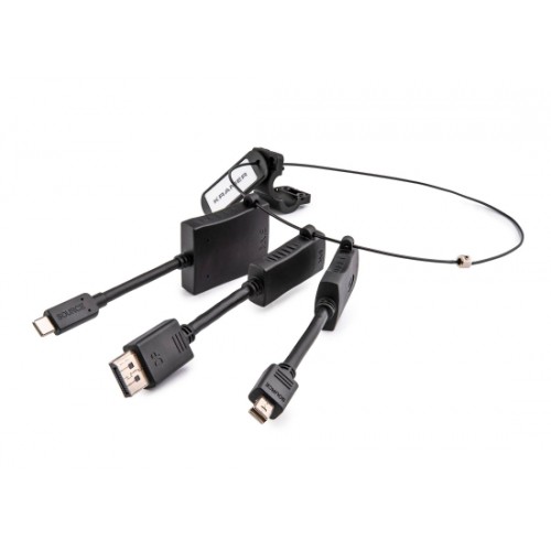 - Sichere deine Adapter mit der Kabelklemme und der Sicherungsschleife