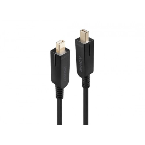 Lindys Range an Fibre Optic Hybrid Mini DP 1.4 Kabeln mit abnehmbaren Steckern ist eine professionelle Lösung zum Verlängern von Mini-DisplayPort und DisplayPort-Signalen über große Distanzen. Zusätzliche Adapter sind nicht nötig. Diese Hybridkabel kombinieren die Flexibilität und den hohen EMI/RFI-Widerstand von Glasfaserkabeln mit Standard-Kupferkabeln und sind ideal für kritische AV-Konfigurationen oder kommerzielle Installationen. Es handelt sich um dünne Kabel mit einem hochwertigen, schmalen Mini-DisplayPort-Stecker aus Metall, die einfach in Kabelkanälen und in beengten räumlichen Verhältnissen verlegt werden können ohne das Innere des Kabels zu beschädigen.