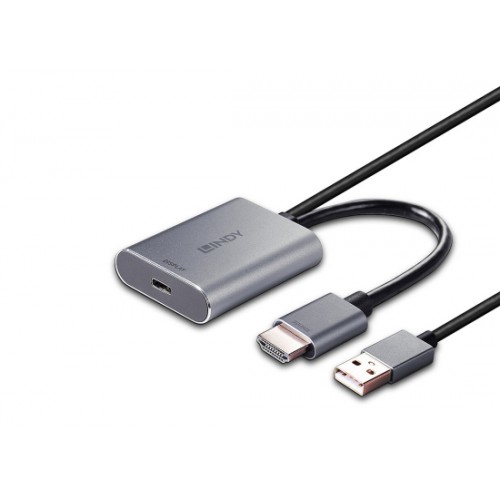 Der Lindy HDMI auf USB Typ C Konverter ermöglicht den Anschluss von HDMI-Quellgeräten wie PCs, Blu-ray Playern oder Mediaplayern an ein USB-Typ-C-Display, Digital Signage Panels und LFDs (Large Format Displays). Immer mehr Displays verfügen über einen USB Typ C Anschluss, beispielsweise sehr flache Displays, tragbare Bildschirme, Touch Panels oder Smartboards und tragbare Projektoren. Mit Auflösungen bis 3840x2160@60Hz gibt der Konverter Inhalte in hervorragender Klarheit aus - egal ob in innovativen Arbeitsbereichen oder in Bildungseinrichtungen. Immersives 7.1-Kanal Mehrkanal-Audio ergänzt die Videowiedergabe auf dem Bildschirm.