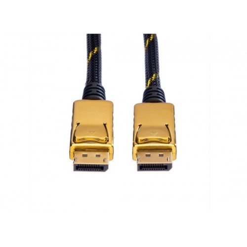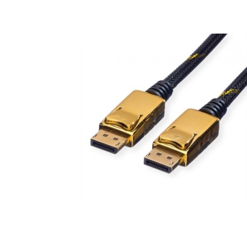 ROLINE GOLD DisplayPort Kabel mit beidseitigem DP-Anschluss für das Verbinden eines Ultrabooks, Notebooks/Laptops oder PCs mit einem Monitor, TV, Beamer oder Projektor - für Bildschirmübertragungen in exzellenter Qualität mit einer Auflösung von bis zu 3840x2160 / 4096x2560 @60Hz.