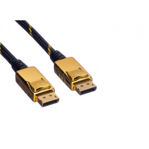 ROLINE GOLD DisplayPort Kabel mit beidseitigem DP-Anschluss für das Verbinden eines Ultrabooks, Notebooks/Laptops oder PCs mit einem Monitor, TV, Beamer oder Projektor - für Bildschirmübertragungen in exzellenter Qualität mit einer Auflösung von bis zu 3840x2160 / 4096x2560 @60Hz.