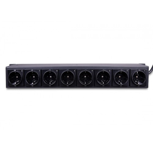 - 8 Schalter auf der Vorderseite und Schuko-Steckdosen auf der Rückseite
