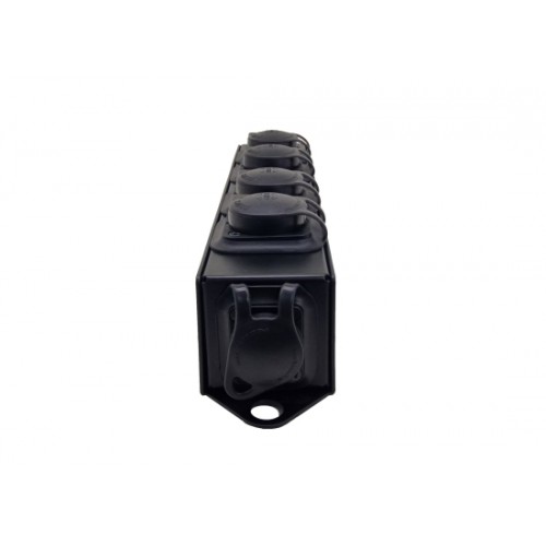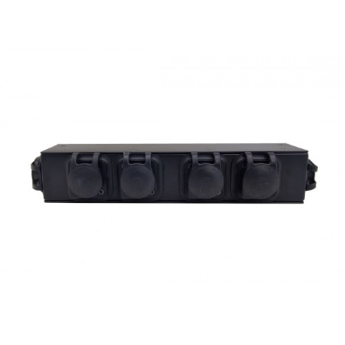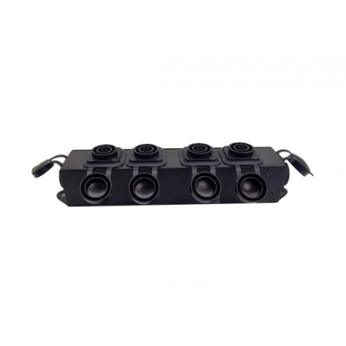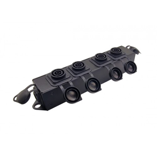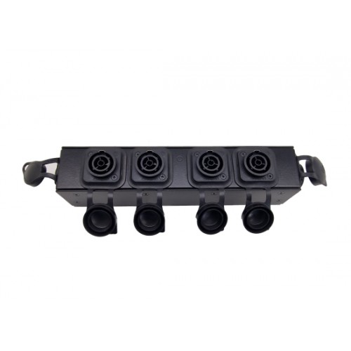 Der Rigport4xT1 ist eine wassergeschützte Powercon True1 4-Fach Verteilung für die Traverse. Mit einer weiteren Buchse zum Durchschleifen kann er als zentrale Sternverteilung oder als Anschlussquelle für viele Geräte auf naheliegendem Raum verwendet werden. Dank einer M10 Schraubaufnahme lassen sich auch Coupler, Triggerclamps o.ä. befestigen.
