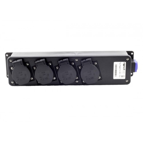 Beim Rigport L1S4 handelt es sich um die Schuko Version des Rigport L1. Er besitzt 4 Schutzkontaktbuchsen und kann nahtlos in eine Powercon Versorgungsstrecke integriert werden.
