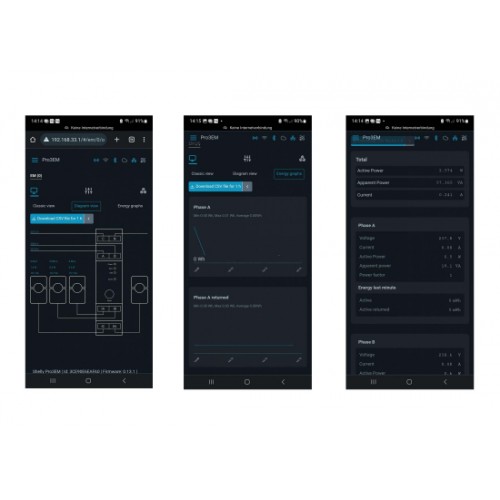 - Spannungs-/Strom-Anzeige zum Einschleifen in 3-phasige Versorgungsstränge