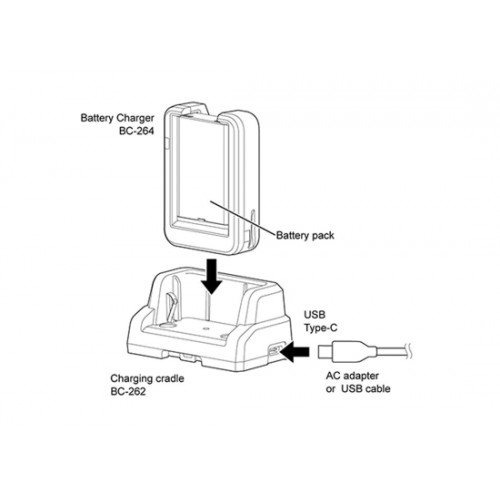 - Der Akku kann auch mit eingesetzter BC-262 Ladeschale aufgeladen werden.