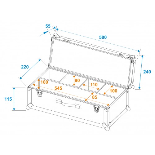 Truhen-Case mit LenkrollenInnenraum mit SchaumstoffpolsterungDeckel mit SchaumstoffpolsterungAlumini..