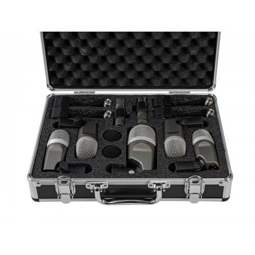 7-teiliges Mikrofon-Komplettset für Drumsets4 x dynamisches Snare/Tom-Mikrofon2 x Overhead-Kondensat..