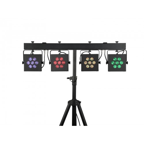 Bar mit 4 lichtstarken 6in1 HCL RGBWA/UV-Spots, AirW-Funkeinheit (2,4 GHz), Funkfernbedienung und Transporttasche