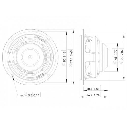 30 W AES, 8 Ohm, 89 dB, 120 - 21000 Hz