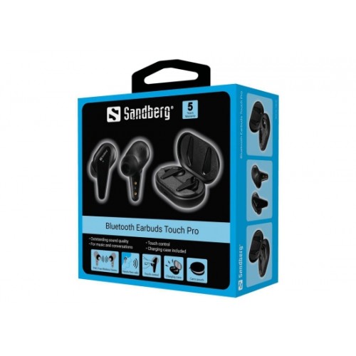 Die Sandberg Bluetooth Earbuds Touch Pro bieten dir kabellosen Stereosound der Extraklasse. Sie lassen sich einfach mit einem Bluetooth-Gerät wie einem Smartphone, einem Tablet oder einem PC verbinden. Du benötigst keine physischen Knöpfe, denn die Ohrhörer werden einfach über eine Berührungstaste auf der glatten Oberfläche bedient. Die Ohrstöpsel werden bequem in der mitgelieferten Ladeschale aufgeladen.