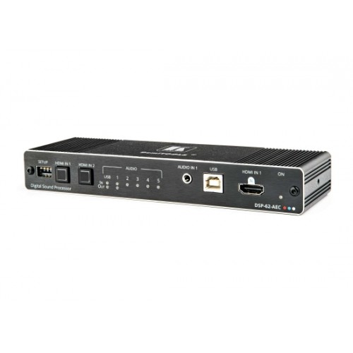 DSP-62-AEC ist ein Mitglied der Kramer XSPerience Familie von DSP-Produkten. Der DSP-62-AEC ist ein fortschrittlicher, professioneller 6 x 2 Audio-Matrix-Switcher, der Mehrkanal-DSP, AEC (Acoustic Echo Cancellation), HDMI-De-Embedding und eine klassenkonforme USB-Audio-Schnittstelle beinhaltet. Die umfassende und benutzerfreundliche grafische Oberfläche macht die Konfiguration jedes Details Ihres Audiosystems intuitiv und einfach.
