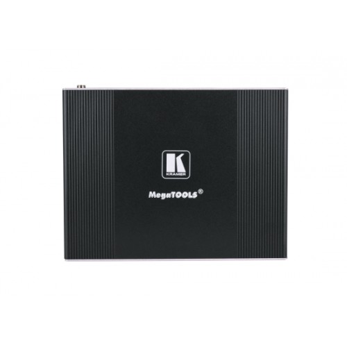 - Control: Input selection buttons, DIP–switches, remote contact–closure switches, relay switches. Kramer API via RS–232 serial commands transmitted by a PC, touch screen system or other serial controller, embedded web pages via LAN for configuration and control