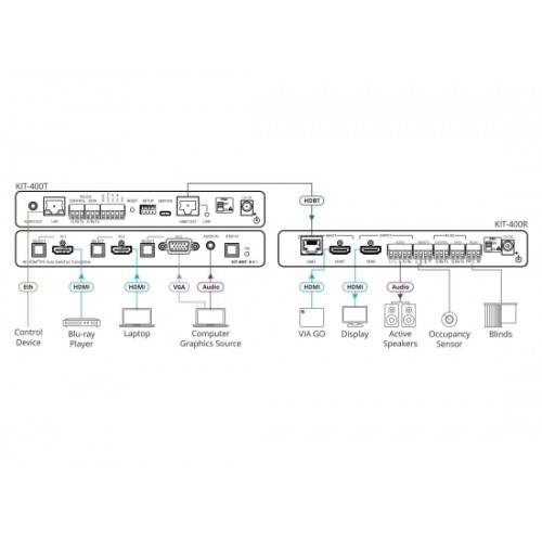 - Max Resolution (on HDMI ports): KIT–400R: 4K@60Hz (4:4:4), KIT–400T: 4K@60Hz (4:2:0)