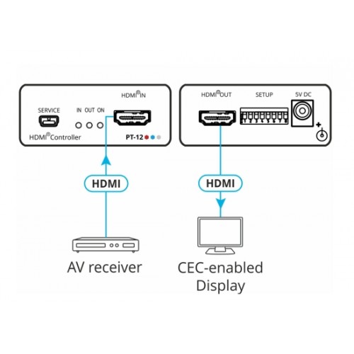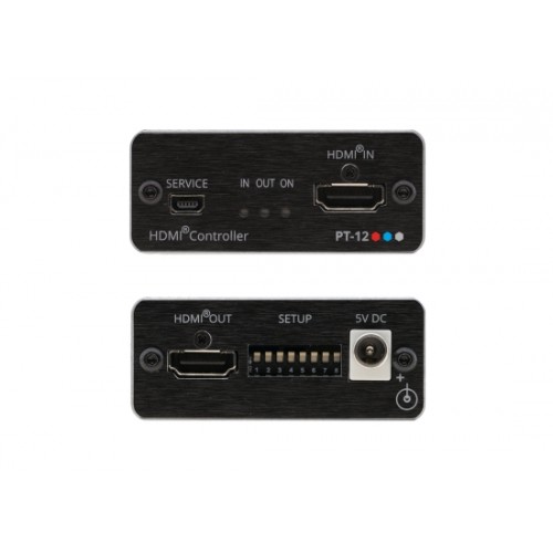 PT−12 ist ein CEC−fähiger TV/Display ON/OFF−Controller und erweiterter EDID−Prozessor für HDMI−Signale bis zu einer Auflösung von 4K@60Hz (4:2:0). Wenn er einen HDMI−Kabelstecker erkennt, schaltet er die angeschlossene Anzeige automatisch ein und wieder aus, wenn ein Signalverlust erkannt wird. PT−12 ist ein EDID−Verarbeitungswerkzeug zur Steuerung der EDID−Funktionen.