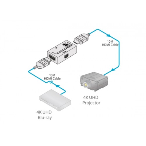 - Reichweite - 10 m zum Eingang, 10 m vom Ausgang, gesamt 20 m bei 4K 60 (4:4:4), 25 m zum Eingang, 15 m vom Ausgang, gesamt 40 m bei 4K 60 (4:2:0),30 m zum Eingang, 15 m vom Ausgang, gesamt 45 m bei 1080p60