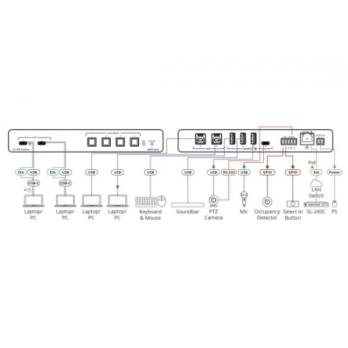 - 1 x Kramer SWT3-41-U 4x1 USB Switcher