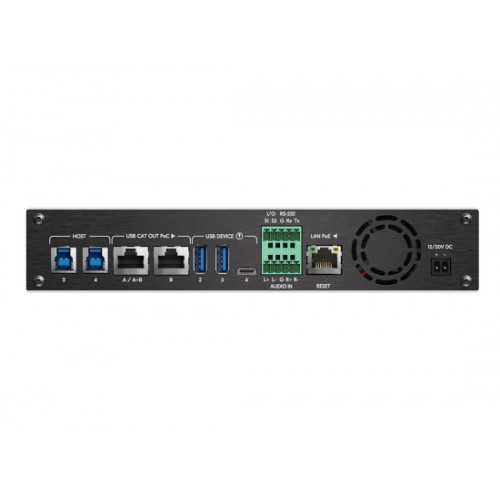 Die lokal und über CAT-Verbindungen angeschlossenen USB-Peripheriegeräte, wie eine Raumkamera und ein Mikrofon, sind für die Nutzung durch den aktiven USB-Host umschaltbar. Das macht es Dir einfach, an Online-Meetings teilzunehmen.