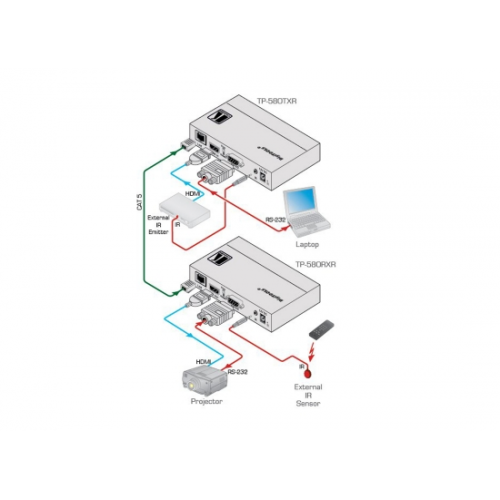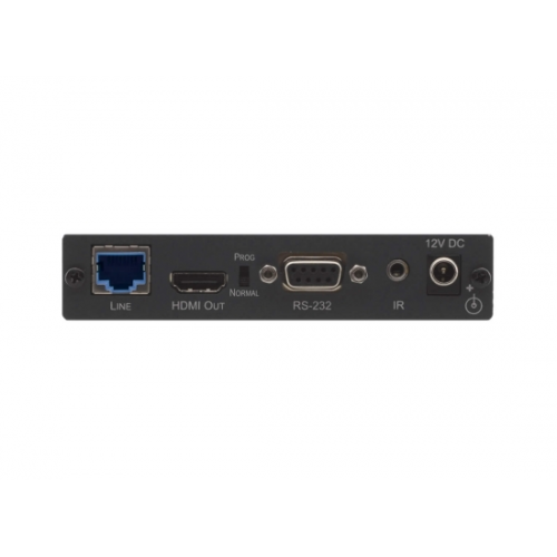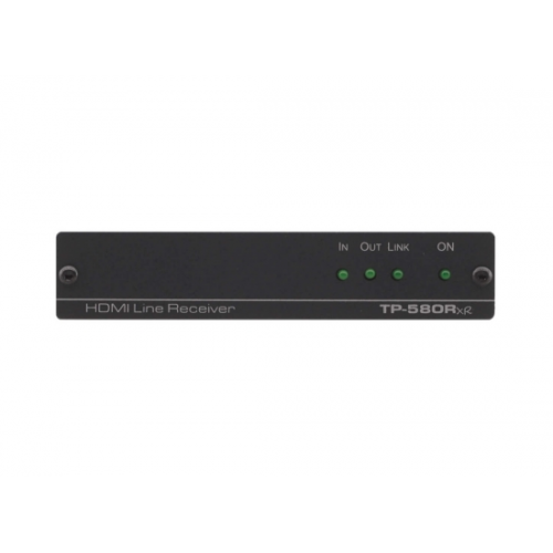 TP−580RXR ist ein HDBaseT Twisted Pair Empfänger für HDMI, bidirektionales RS−232 und IR−Signale mit erweiterter Reichweite. Er hat einen Eingang für das HDBaseT Twisted Pair Signal vom Übertrager TP−580TXR und wandelt dieses zurück in HDMI, RS−232 und IR−Signale.
