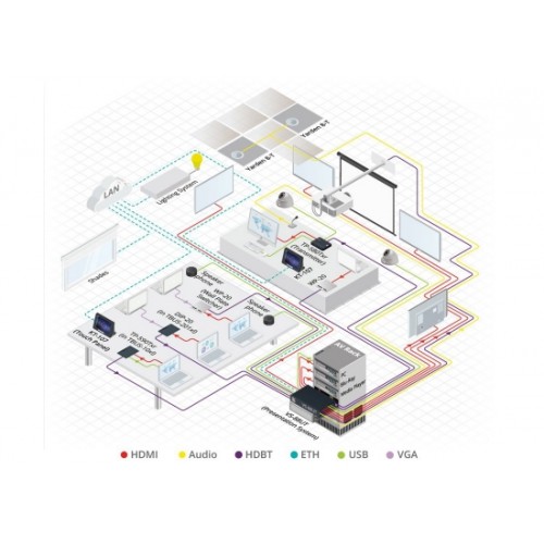 - Kabel - Es wird geschirmtes Twisted Pair (STP) Kabel benötigt. Für optimale Reichweite und Leistung verwenden Sie Kramers BC-HDKat6a Kabel. Die Übertragungsreichweite hängt u.a. von der Auflösung, der Grafikkarte und dem Display ab. Die Übertragungsreichweite kann bei Verwendung von CAT 6 Kabeln, die nicht aus unserem Produktprogramm sind, geringer sein als angegeben.