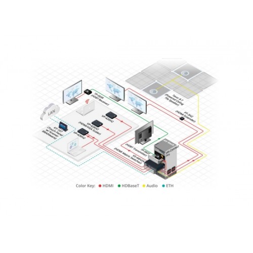 - Einhaltung von Standards: HDBaseT 1.0 (Hinweis: Bei Verwendung empfohlener Kramer–Kabel)