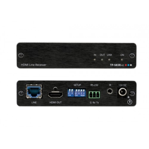 TP−583Rxr ist ein leistungsstarker HDBaseT Empfänger mit erweiterter Reichweite für 4K−HDR−HDMI−, RS−232− und IR−Signale über Twisted Pair. TP−583Rxr konvertiert das HDBaseT−Signal und gibt es an seine HDMI− und Steueranschlüsse aus. Es ermöglicht die Erweiterung des Videosignals auf bis zu 100 m bei einer Auflösung von 4K@60Hz (4:4:4), auf bis zu 180 m bei 4K@60Hz (4:2:0) und bis zu 200 m. bei HD−Videoauflösung über Kramer−Kupferkabel. Es ist mit Standard−HDBaseT−kompatiblen Extendern bei 4K@30Hz und HD−Videoauflösungen kompatibel.