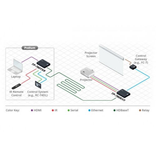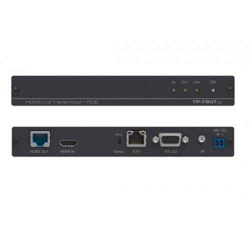 TP−780TXR ist ein Hochleistungs−TP−Übertrager (HDBaseT) für 4K @60 Hz (4:2:0) UHD, 2Kx4K HDMI, Ethernet, bidirektionales RS−232, IR−Signale und PoE. Das Gerät hat Eingänge für HDMI, Ethernet, RS−232 und IR und wandelt diese Signale in ein HDBaseT TP−Signal und überträgt dies an den Empfänger TP−780RXR. Der Übertrager TP−780TXR liefert PoE an den TP−780RXR, wo eine externe Stromversorgung schwierig sein kann. Dadurch können Daten und Stromversorgung über ein einziges HDBT−LAN Kabel an kompatible Geräte übertragen werden.