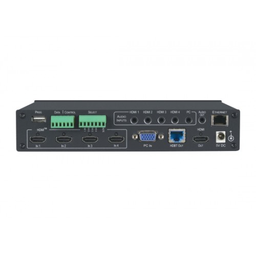 - Ausgänge: 1x HDMI / 1x HDBaseT (auf RJ-45 Anschluss) / 1x 3,5mm Miniklinke