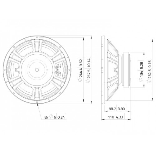 150 W AES, 8 Ohm, 96 dB, 55 - 5200 Hz