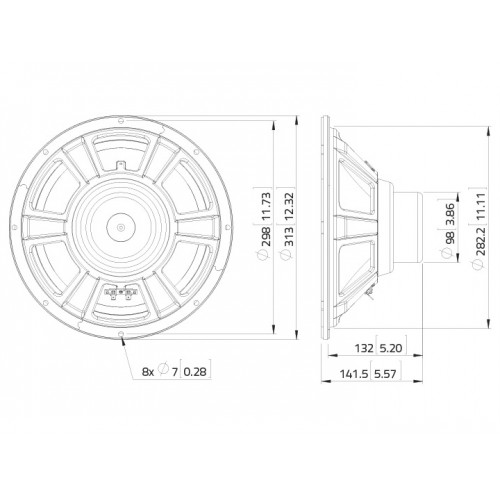 400 W AES, 8 Ohm, 98 dB, 50 - 3000 Hz