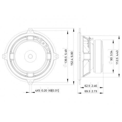 60 W AES, 8 Ohm, 91,5 dB, 100 - 5000 Hz
