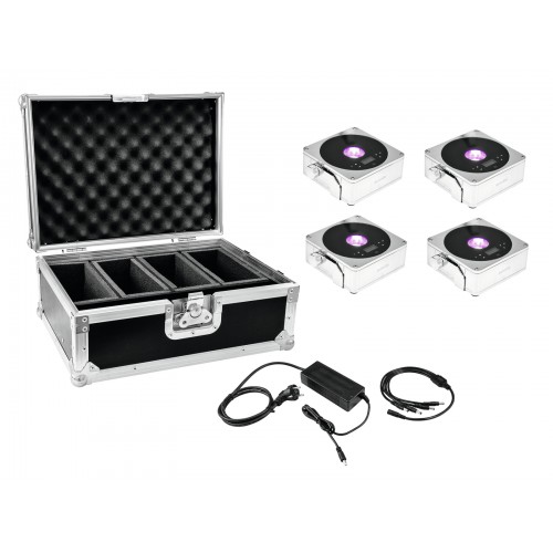 EUROLITE Set 4x AKKU IP Flat Light 1 chrom + Case + Ladegerät