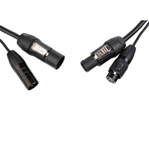 - DMX + POWER 3x1,5 mm²-Kabel mit Seetronic 3p XLR IP65- und PowerCON TRUE1-kompatiblen Anschlüssen, 2 x transparenter Schrumpfschlauch 7 cm.