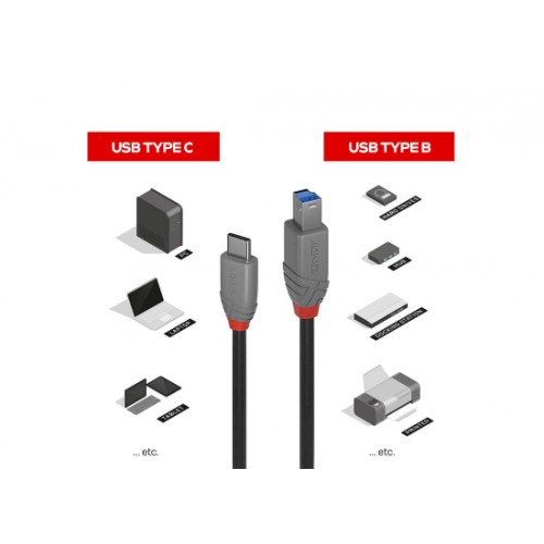 Die USB 3.2 Typ C an B Kabel der Anthra Line aus dem Lindy Cable Lines Konzept sind die professionelle Wahl für Hochleistungsverbindungen in professionellen AV- und IT-Installationen.