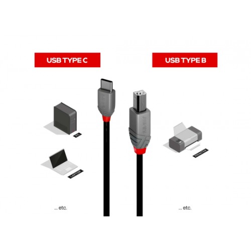 Die USB 2.0 Typ C an B Kabel der Anthra Line aus dem Lindy Cable Lines Konzept sind die professionelle Wahl für Hochleistungsverbindungen in kommerziellen AV- und IT-Anwendungen.