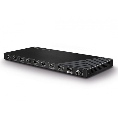 - Verteilt das Signal einer HDMI 2.0 Quelle auf 8 HDMI Displays