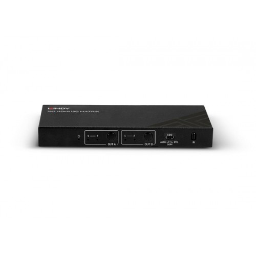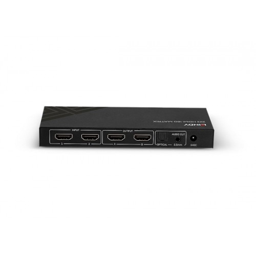 Ein Matrix Switch bietet die Möglichkeit zum unabhängigen und zeitgleichen Verteilen von AV-Inhalten aus mehreren Quellgeräten an mehrere Displays in frei wählbaren Schaltkonfigurationen. Der 2x2 HDMI 18G Matrix Switch stellt eine solche Lösung zum Verteilen der Inhalte zweier Quellgeräte an zwei Zielgeräte (Displays, TV-Geräte oder Projektoren). Je zwei HDMI-Eingänge und -Ausgänge bieten die Möglichkeit, zwischen zwei separaten Quellgeräten, bzw. zwei angeschlossenen HDMI-Displays umzuschalten und Videosignale von einer oder zwei Quellen auf zwei Displays auszugeben.