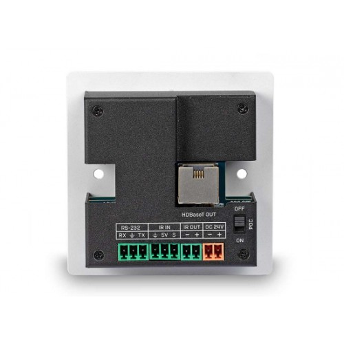 Mit bidirektionalen IR-Anschlüssen auf beiden Seiten der Installation kann das Quellgerät einfach von der Displayseite aus gesteuert werden, und das Display kann auch von der HDMI®-Quellenseite aus gesteuert werden. Dieses Erweiterungssystem ermöglicht eine vollständige und einfache Steuerung für den Benutzer und bietet auch einen RS-232-Anschluss über eine Klemmleiste auf der Rückseite der Wandplatte.