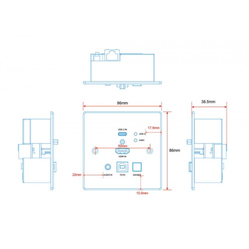Der Lindy Cat.6 HDBaseT HDMI® 4K60 & Typ C Wall Plate Transmitter ist ein Teil einer leistungsstarken, zuverlässigen Lösung für die Verlängerung von AV- und Datensignalen über große Entfernungen via Cat.6 Netzwerkkabel.