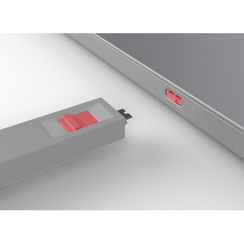 Mit dem Lindy USB Typ C / Thunderbolt 3 Port Schloss können offene USB Typ C Ports schnell blockiert werden, so dass es nicht möglich ist, Kabel oder andere USB-Geräte unberechtigt anzuschließen. Das USB Port Schloss setzt sich aus einem Schlüssel und einem Schloss zusammen. Stecke das Schloss in den USB Port und lösen die Verriegelung. Das Schloss sitzt nun fest im USB Port. Zum Entriegeln steckst du den Schlüssel in das Schloss, dann kann es einfach wieder entfernt werden.