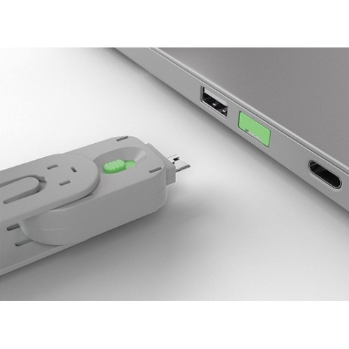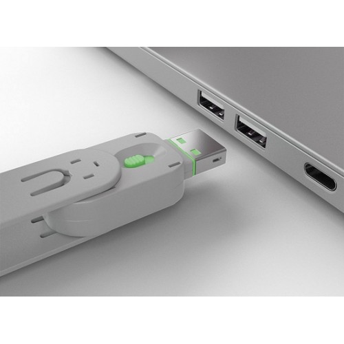 Vier Port Schlösser für USB mit Schlüssel sind die ideale Lösung, um schnell USB Ports gegen unberechtigten Zugriff zu sichern. Verwende dieses USB Port Lock um die USB Ports jedes beliebigen Computers gegen den Anschluss von USB Pen Drives, USB MP3 Playern und anderen USB Massenspeichergeräten zu sichern. Verhindere so auch das unberechtigte Kopieren sensibler Daten aus dem Rechner bzw. dem Netzwerk. Das Schloss verriegelt sich im USB Port und kann nur mit dem passenden Schlüssel (Farbcode) wieder herausgezogen werden.