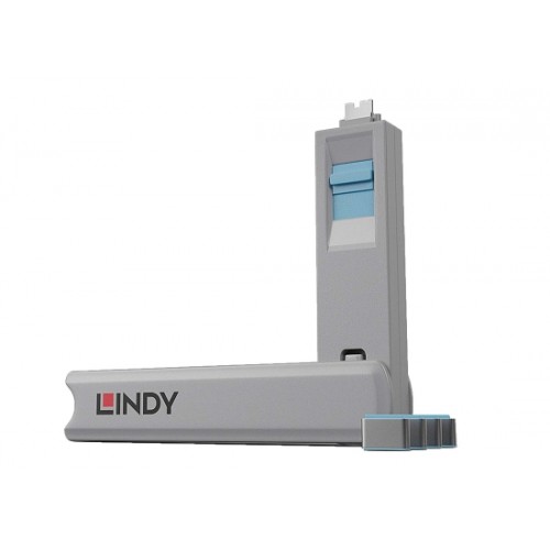 Lindy 40465 USB-C Port Schloss, BLAU, 1x Schlüssel / 4x Schloss